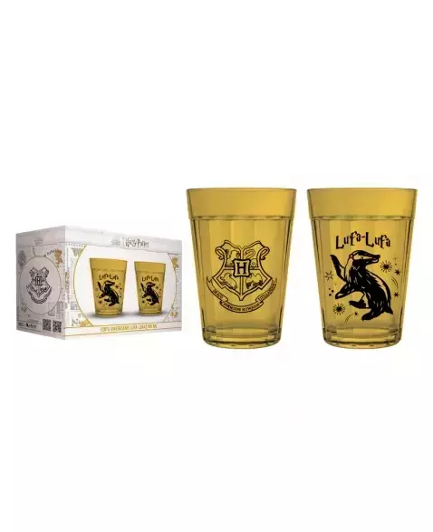 Coleção inspirada na magia de Harry Potter. Produto produzido em vidro. Disponível na cor azul com o brasão da casa Lufa lufa. Possui 190ml, ideal para servir água, sucos e bebidas, em geral.